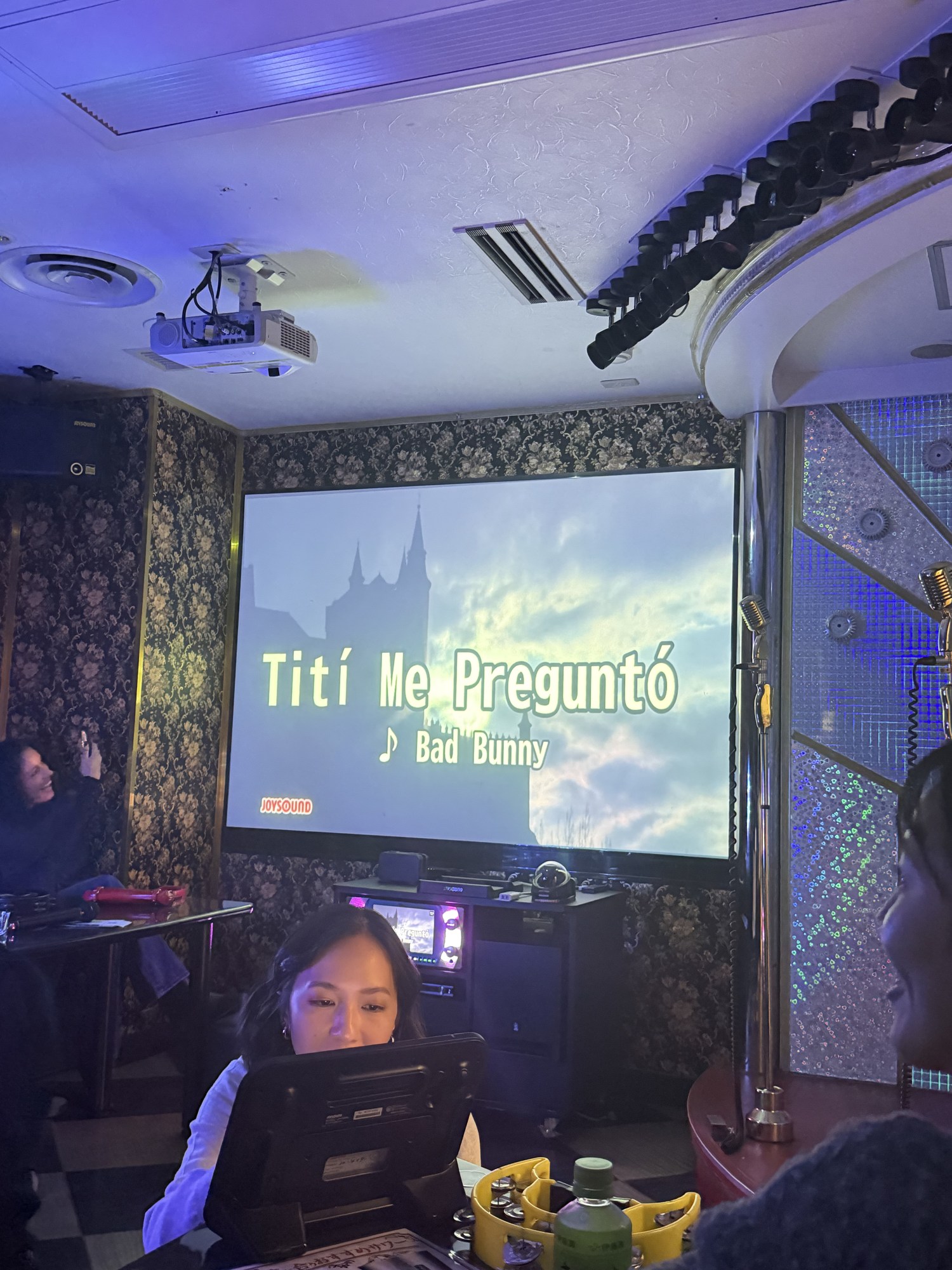 Friday came around, and a few of us headed out to find something to wear to the concert. After a must stop at the Pokémon and Nintendo stores—and a few hours lost in Harajuku —I returned to the hotel with no new clothes, a Mario Kart game for my Switch, and a Vulpix sticker. For dinner we were summoned to Narukiyo, an Izakaya restaurant that counts Madonna as a past patron. We sat on traditional Tatami cushions, I tried sea urchin for the first time, and ate everything that was put in front of and around me. Then came tequila-fuelled karaoke in Shibuya. “Titi Me Pregunto” was queued up and the vibes shifted as it played, the spirit of Bad Bunny taking over. I think we did more shots, then a few gays and girls, myself included, ended up at a Latino bar dancing to salsa, debow, reggeaton, and some Mexican music. It was the perfect amuse-bouche to Benito’s concert.