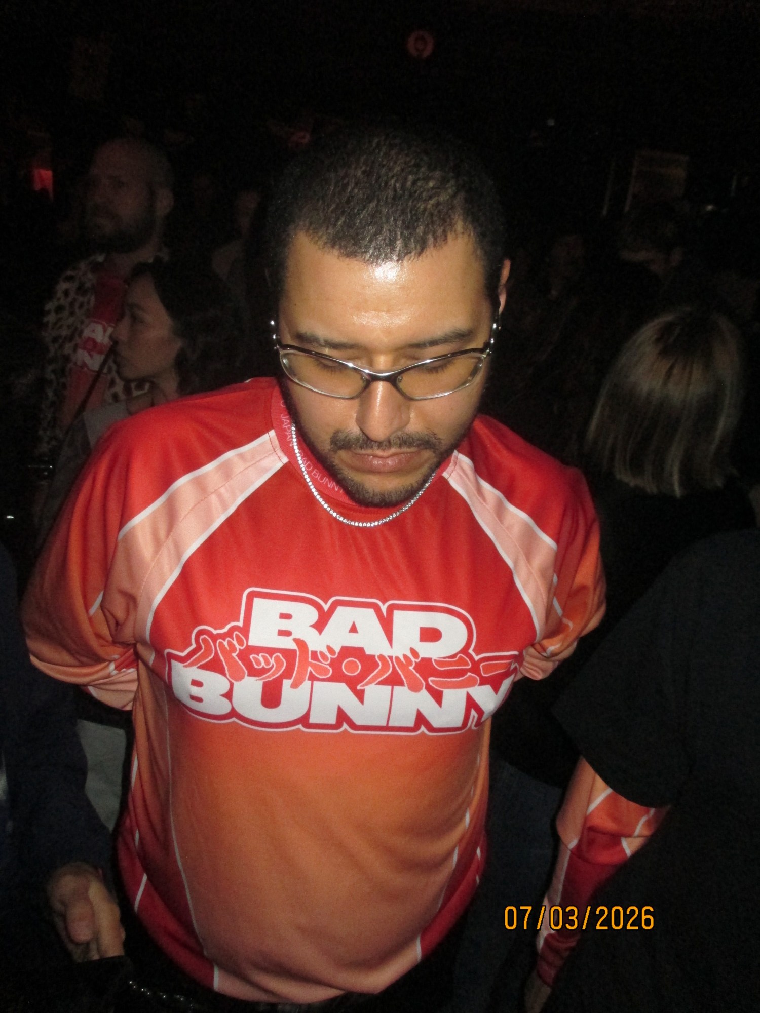 I arrived at Haneda Airport on Thursday, running on adrenaline and the power of el perreotaking over me. After a quick shower, me and a bunch of editors from all over the world were loaded into a caravan of local taxis to Ginza Music Bar, where I tried an octopus snack and the DJ was spinning Sade on vinyl. Later, we stopped by the famous Shibuya Crossing to get a good look at the Spotify announcement of Bad Bunny’s performance in Tokyo. He looked like a saint up there.