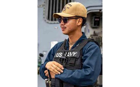 U.S. Navy Logistics Specialist 2nd Class Raymond Imperial stands watch on midships aboard Arleigh Burke-class guided-missile destroyer USS Dewey (DDG 105) during a sea and anchor evolution while departing Okinawa, Japan, March 7, 2026. Dewey is forward-deployed and assigned to Destroyer Squadron (DESRON) 15, the Navy’s largest DESRON and the U.S. 7th Fleet’s principal surface force.