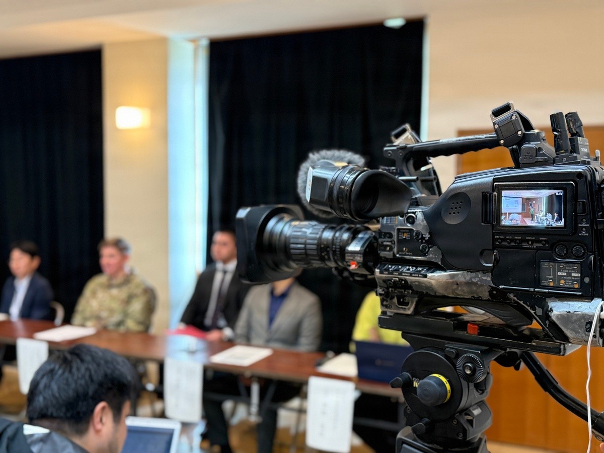 U.S. Army Garrison Okinawa Commander Lt. Col. Elizabeth Johnson attends a joint press conference announcing the eradication of an invasive ant species in Naha, Okinawa, Japan, March 12, 2026.