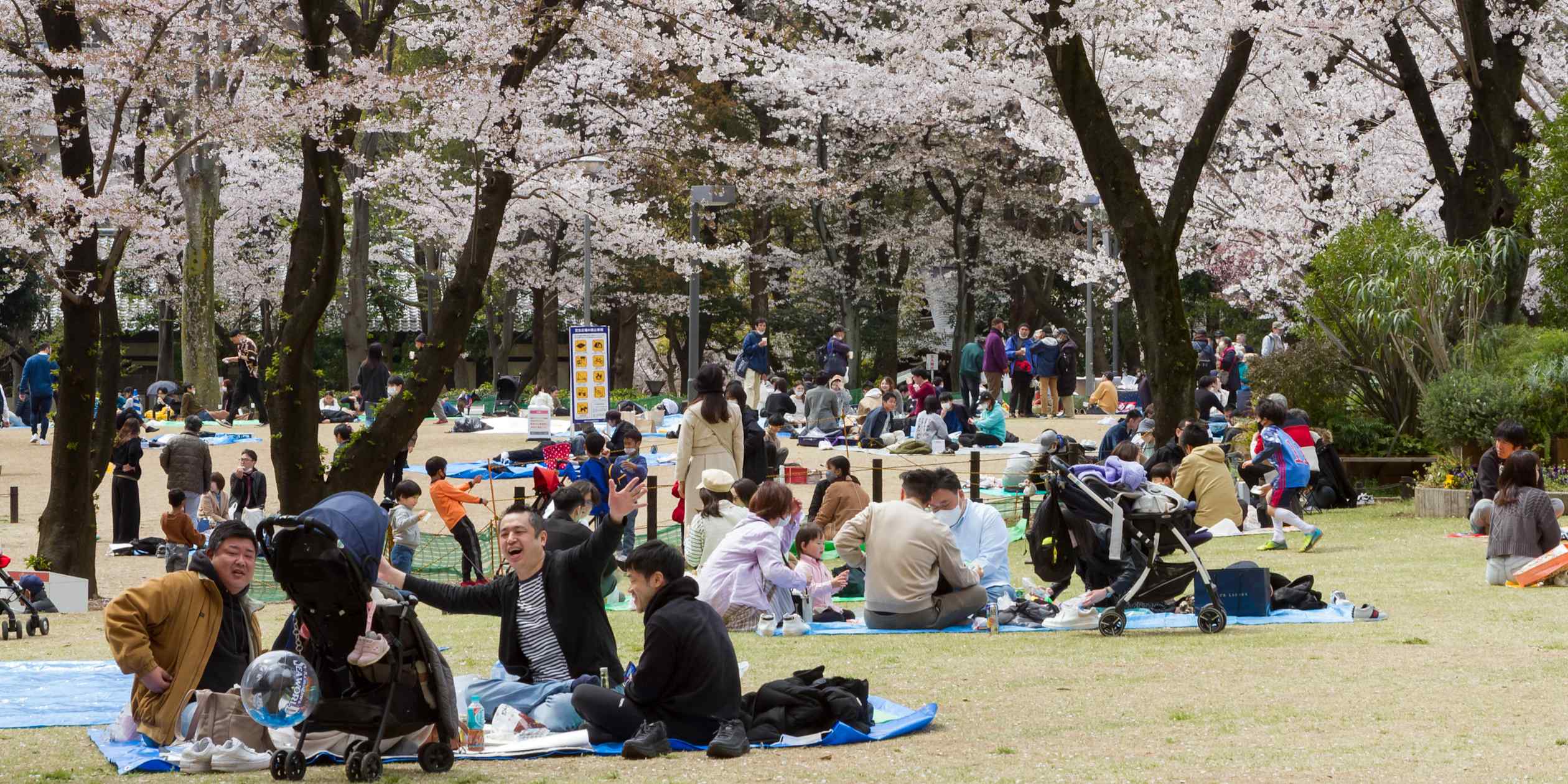 People gather beneath cherry blossoms in a Tokyo park for “hanami,” a centuries-old tradition celebrating the arrival of spring. © Getty Images