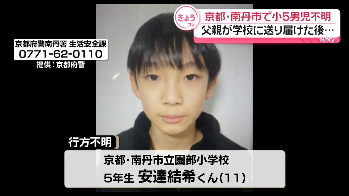 The missing boy is Yuki Adachi, a fifth-grader at Sonobe Elementary School in Nantan City.