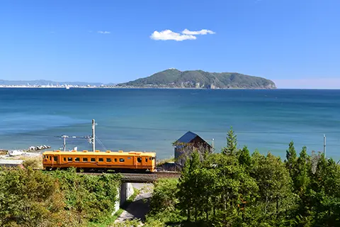 Along the section running beside Hakodate Bay, passengers can enjoy views of Mount Hakodate.