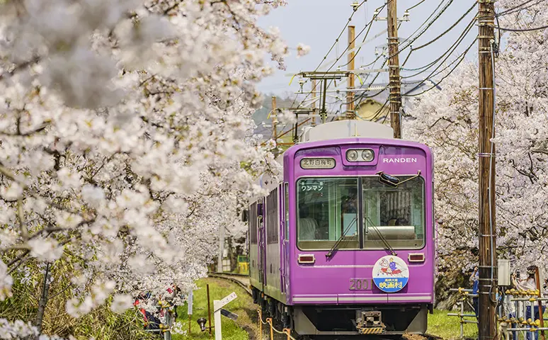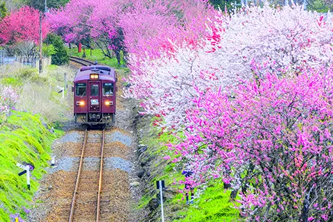 Particularly well known are the cherry blossom tunnel between Narutaki and Utano stations on the Kitano Line, which branches from the Arashiyama Main Line of the Keifuku Electric Railroad in Kyoto; the Natsui Senbon-Zakura (“1,000 Cherry Trees of Natsui”), where thousands of cherry trees line both banks of the river along the Ban’etsu East Line, operated by JR East, from Koriyama Station to Iwaki Station in Fukushima Prefecture; and the cherry blossom scenery around Shin-Fujiwara Station on the Aizu Kinugawa Line of the Yagan Railway, which runs from Shin-Fujiwara Station in Tochigi Prefecture to Aizu-Kogen-Ozeguchi Station in Fukushima Prefecture.