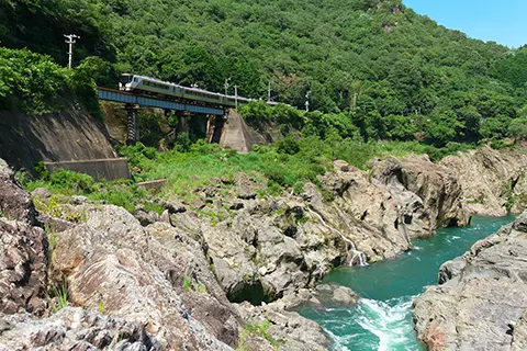 On the Watarase Keikoku Line, which runs from Kiryu Station in Gunma Prefecture to Mato Station in Tochigi Prefecture, travelers can enjoy views of the Watarase River valley from the train window. Similarly, the JR Central and JR West Takayama Main Line, connecting Gifu Station in Gifu Prefecture to Hida-Furukawa Station, runs along the Arata, Kiso, and Hida rivers, offering spectacular views of the Hida River Gorge, known as Hisui-kyo.