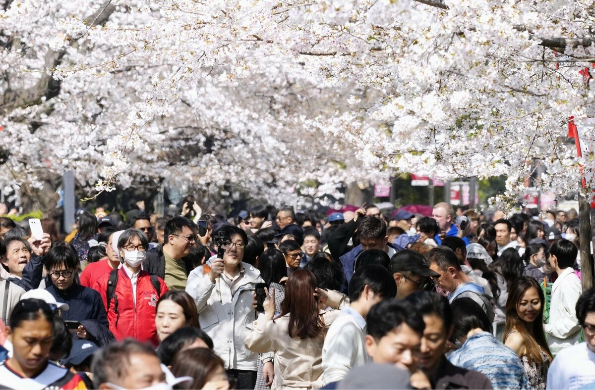 This year’s peak bloom in central Tokyo came three days earlier than average and two days earlier than last year.