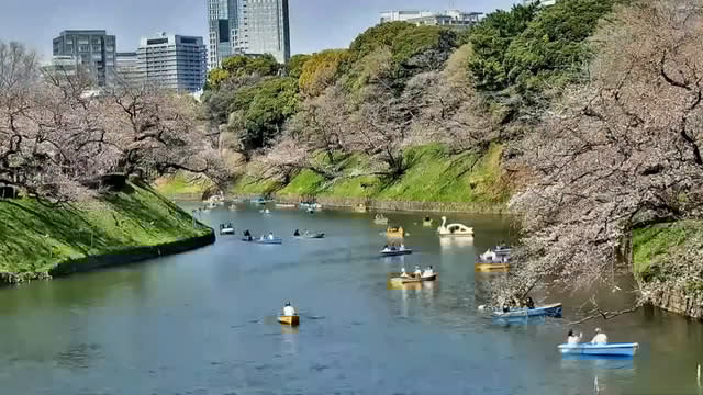 Crowds lined the rivers of Tokyo as cherry blossoms reached their peak this week, captured in a timelapse on Saturday (28 March).