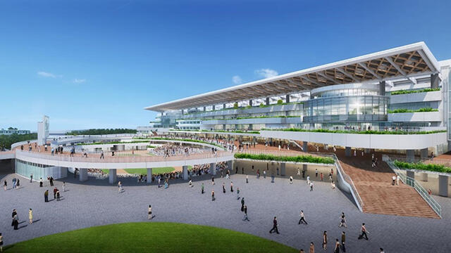 The project has been divided into three zones and Obayashi is in charge of the grandstand construction zone. The new grandstand at 35 meters will be the same height as the current Grand Swan stand that is earmarked for demolition in this project. However, the ceilings on each floor will be higher to create a spacious and open atmosphere. Shifting to cashless ticket purchases has facilitated a reduction in the size of the backyard. The newly transformed state-of-the-art horseracing facilities will offer more spacious customer areas and greater convenience.