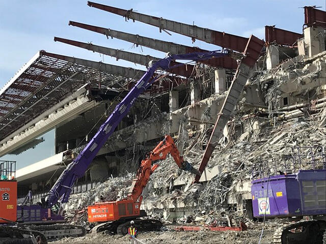 So that the Big Swan could be kept open for customers over the weekend, demolition work on the Grand Swan was carried out with restricted movement of goods on and off site and within limited permitted areas
