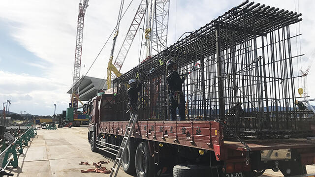 Various changes to the initial plans involving such aspects as materials, equipment, and construction methods have been made to help shorten the construction period. When building the foundation for the new stand, the racecourse parking lot was used to process and assemble rebars for the piles and pre-assemble foundation beam rebar units. Reinforcement inspections were also carried out on the parking lot before the assembled rebars were transported to the construction site for installation. By splitting the work into processes that had to be done on the construction site and those that could be done outside the site, work can be done at their own pace without being influenced by the progress of subsequent processes. This was just one way to reduce worker waiting time and not bring on-site work to a grinding halt.