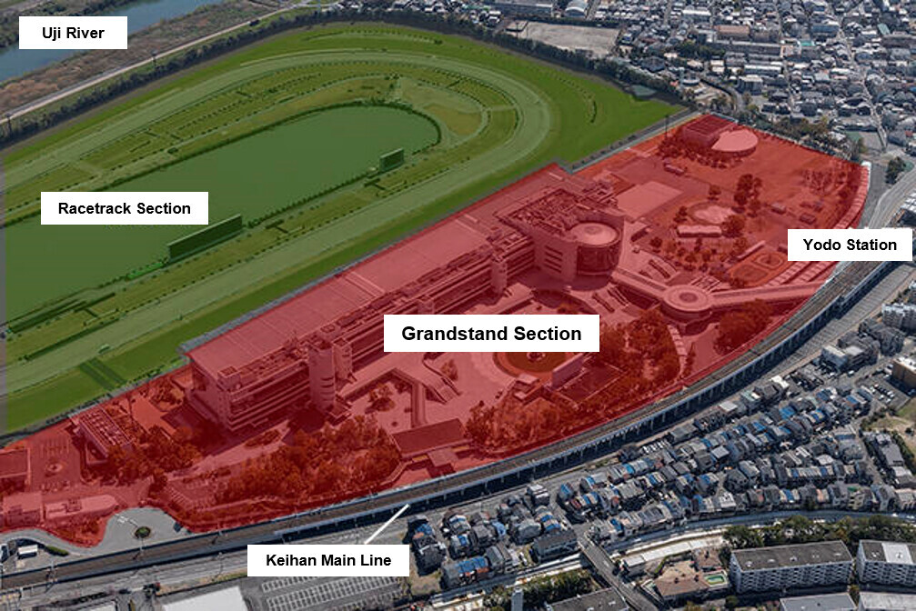 The Kyoto Racecourse was first constructed in 1908 when modern horse races were held in Shimabara, Shimogyo-ku, Kyoto. After moving to Kyotamba Town in 1925, the racecourse was constructed on the current Yoshijima Watashibajimacho site in Fushimi-ku. The rebuilding of the grandstands and renovation of all other facilities including the stables and racetrack are currently underway as part of a commemorative project to mark the course’s 100th anniversary in 2025.