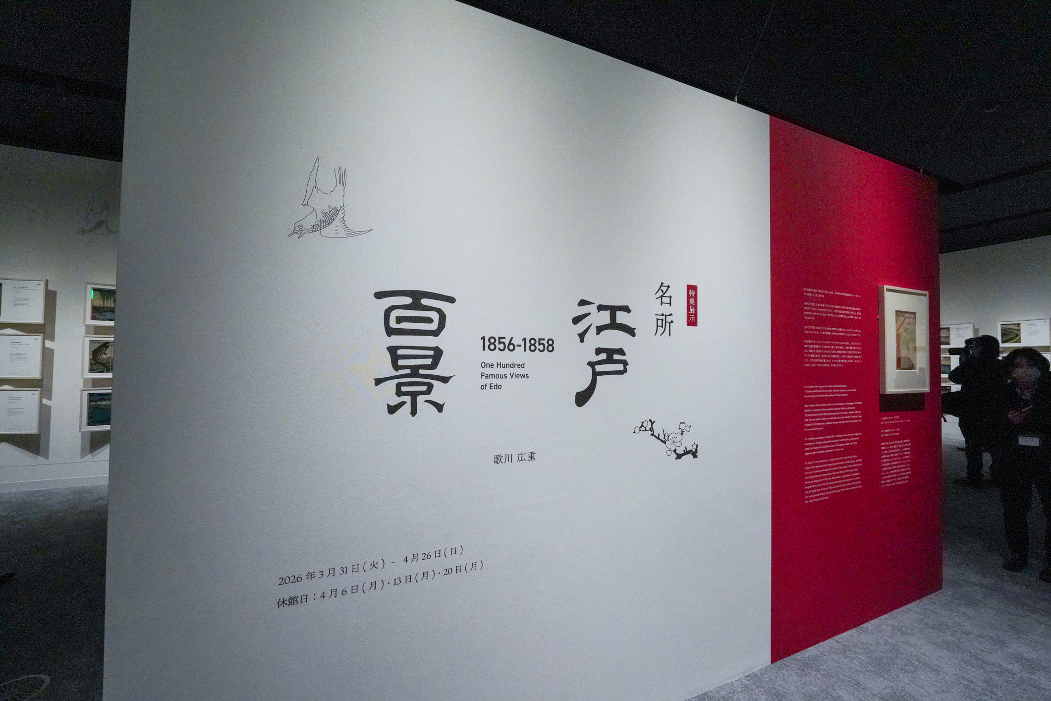 As well as permanent exhibitions, visitors can also enjoy temporary galleries in the “Edo no Bi” (The Beauty of Edo) section. In the first month following the reopening, the complete collection of Utagawa Hiroshige’s One Hundred Famous Views of Edo will be displayed in specially designed frames inspired by the form of a bound booklet.