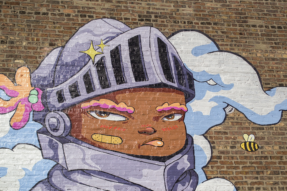 Bianca Pastel’s mural at 63rd and Aberdeen in Englewood features Binky, a central character in her work. Credit: Nicole Misfitx