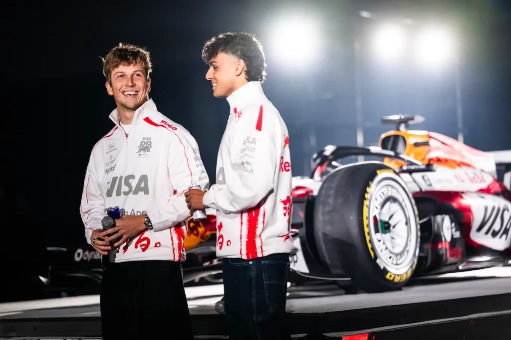 F1 drivers Liam Lawson and Arvid Lindblad. (©Red Bull Content Pool/Jason Halayko)
