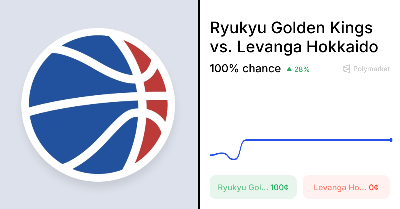 Ryukyu Golden Kings enter as trader consensus favorites at 68.5% implied probability against Levanga Hokkaido in this B.League matchup at home in Okinawa, bolstered by a lopsided head-to-head record of 17-1, including recent victories like a 72-64 road win last April. Their slightly stronger regular-season mark—32-15 for fifth place versus Hokkaido’s 31-16 in seventh—reflects consistent form late in the campaign, with Ryukyu fresh off a third-place EASL Finals finish against Alvark Tokyo on March 24. No major injuries reported for either side, though Hokkaido faces a travel disadvantage and tougher road splits; playoff seeding implications heighten the stakes in this potential regular-season finale.