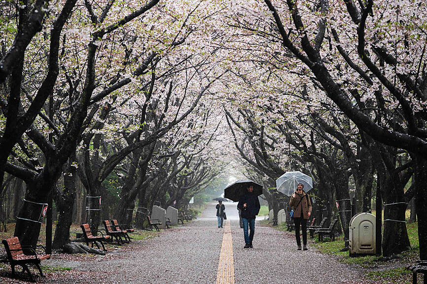 Two cherry blossom trees collapsed on Thursday, one at Kinuta Park in downtown Tokyo and the other at the Chidorigafuchi greenway. The one in Kinuta Park damaged a fence while the other tree almost fell into the Imperial Palace moat. Nobody was injured.