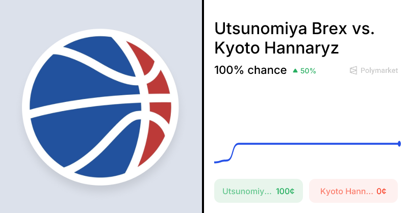 Trader consensus has priced Utsunomiya Brex at 100% implied probability for victory over Kyoto Hannaryz in this B.League matchup, driven by Brex’s commanding in-game lead late in regulation after a tight halftime score of 45-42. Sitting third in standings with a dominant 36-12 record, Brex boasts superior recent form (W-W-L-W-W) and crushes the head-to-head history, winning their last four encounters by double digits including a 91-75 triumph yesterday in the series opener. Home-court advantage at Brex Arena amplifies their edge against a middling Kyoto squad (16-32 record, W-L-W-W-L streak). A realistic upset would require an extraordinary Hannaryz comeback fueled by hot shooting and Brex turnovers or ejections, though historical patterns and current momentum render it highly improbable.