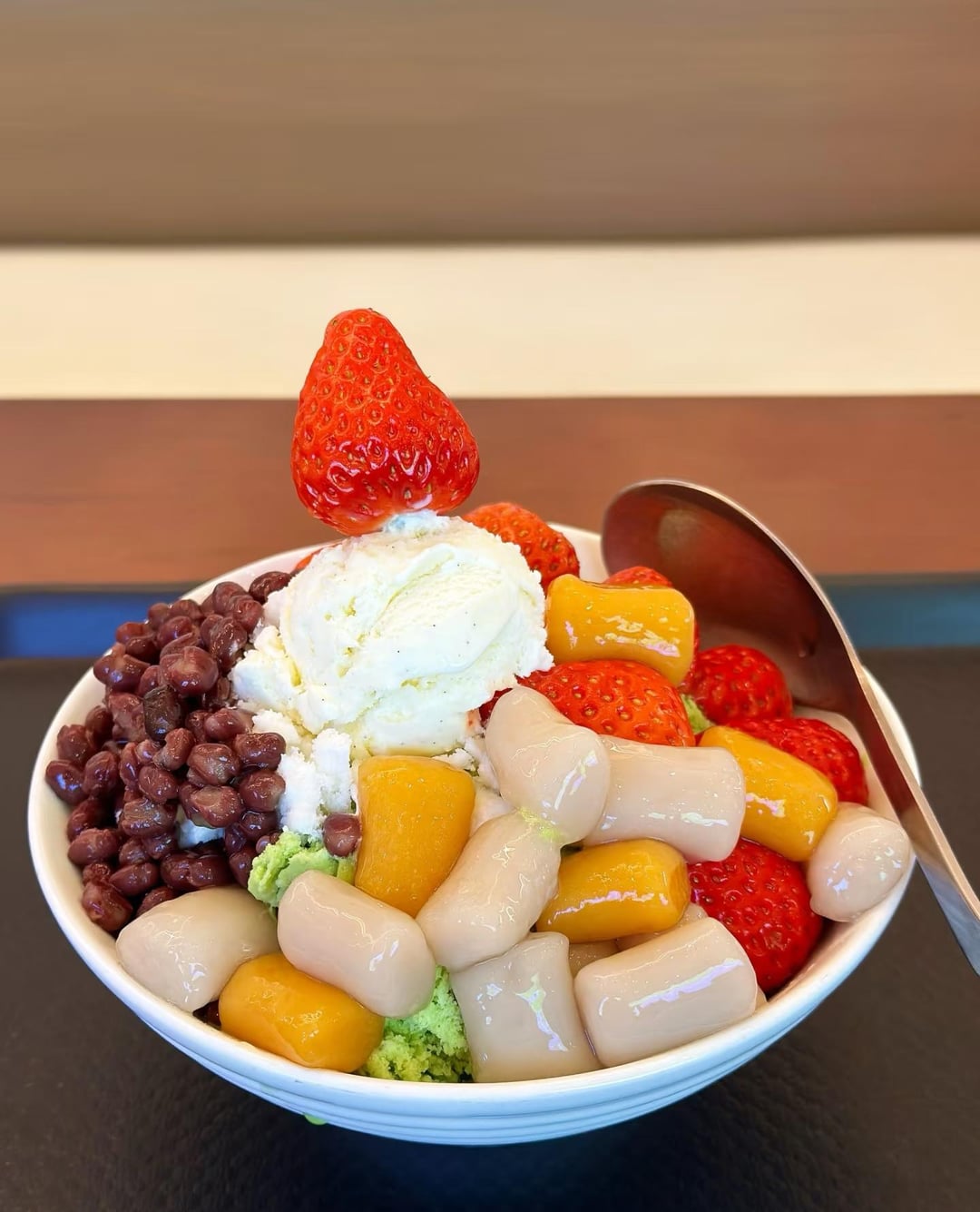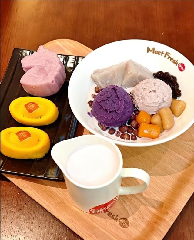 What are the yellow and beige ingredients? Are they a type of mochi or starch?