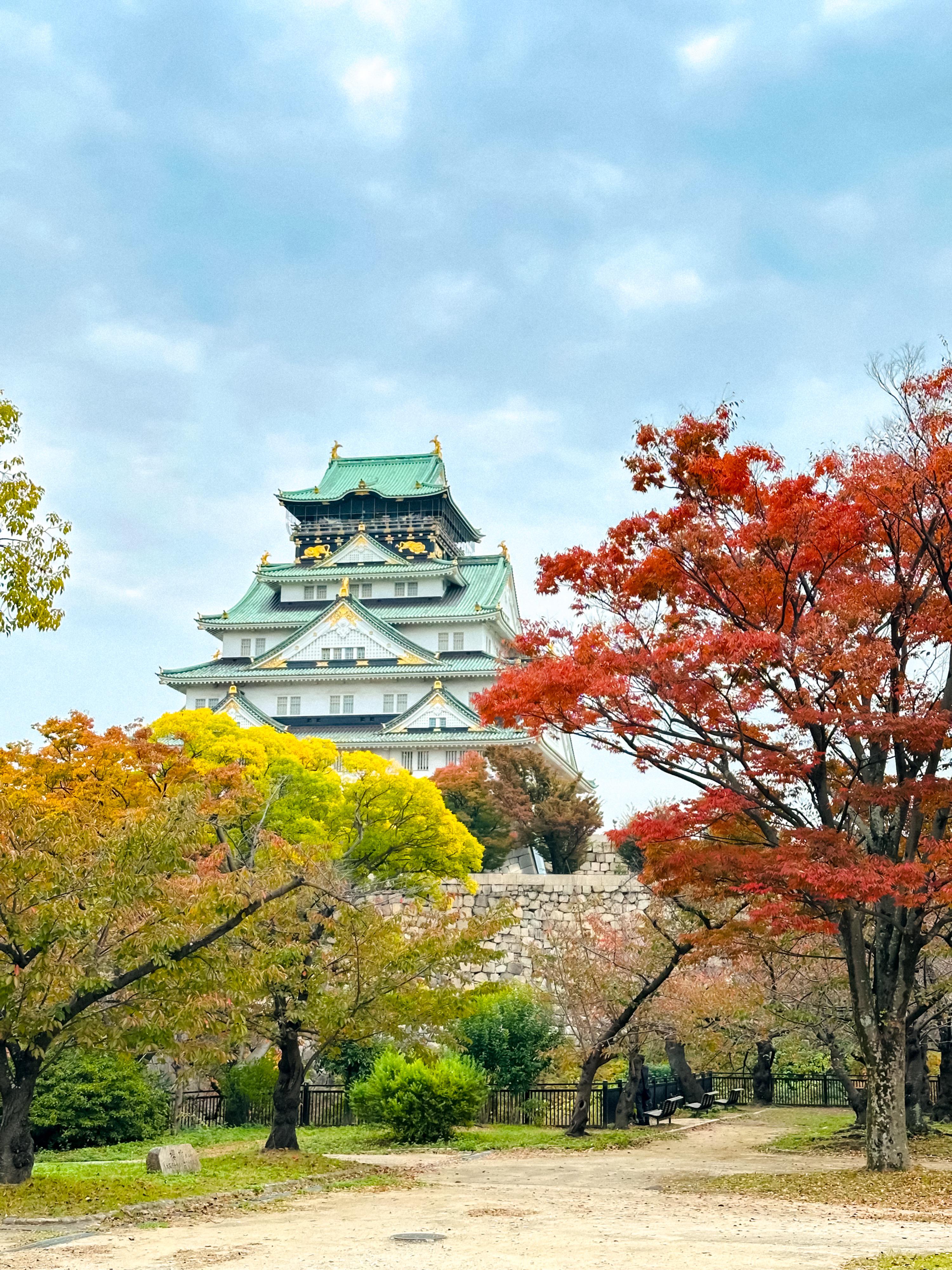 If you’re visiting Osaka Castle, don't just stay at the top! The views from the lower park paths (like this one) are actually better for photography than being right under the walls.