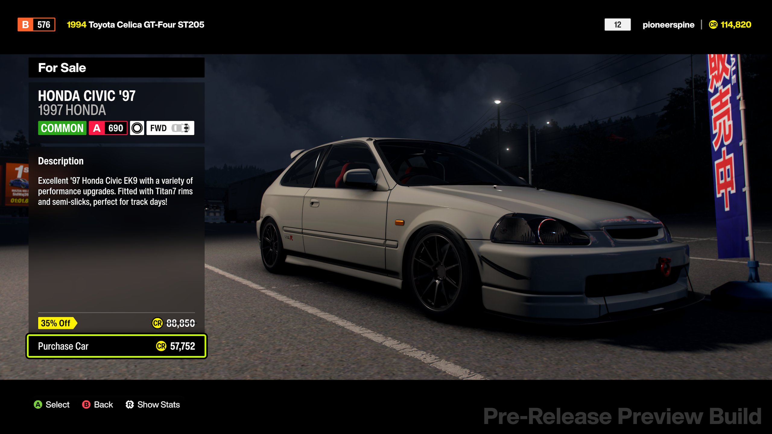 In your travels, you may happen across cars for sale, and I’m not just talking about your classic Horizon Barn Finds of old (those are here, too, though not in my demo.) These cars have some modifications and are sold at a reduced price, and they’re a very cool wrinkle that I expect will lend this installment some surprises its predecessors probably could have used. On the topic of customization, we’ve discussed the new Forza aero parts available for every car, but an even bigger deal is the selection of new aftermarket wheels added for this installment, as well as the ability to fit different wheels on each axle. This might now be the best and most diverse assortment of rims in any racing game, and Gran Turismo 7 is no slouch.