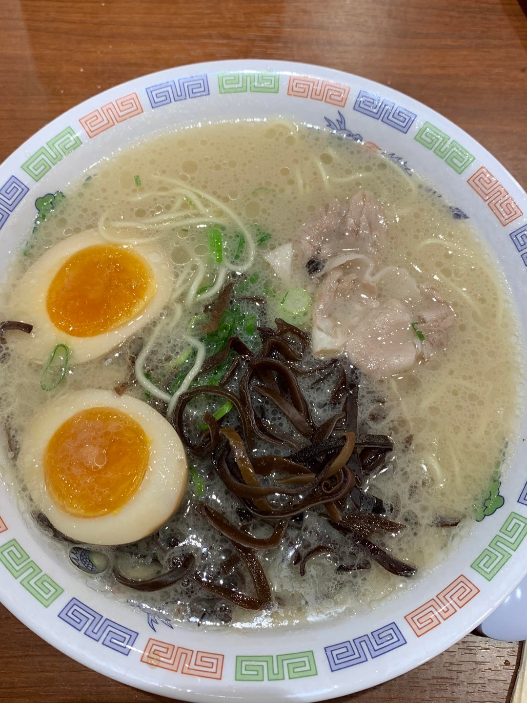 3) Mayu garlic ramen- black garlic oil ramen, but I added more on garlic after the photo was taken. It's known for Kumamoto's speciality.
