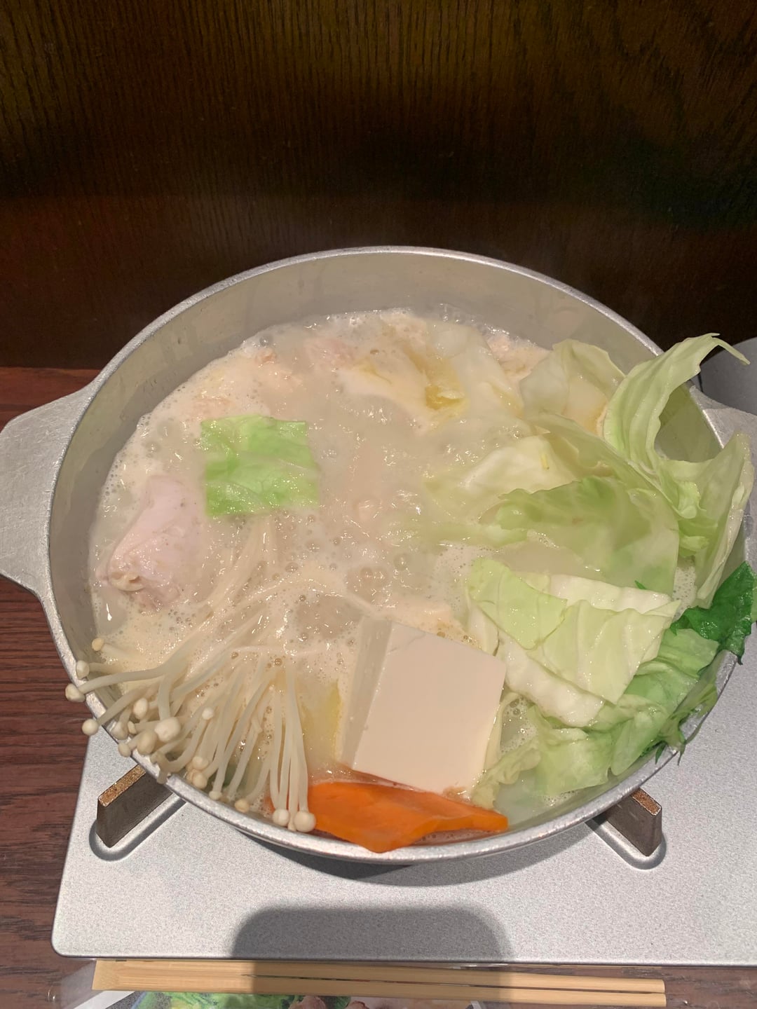 6) Mizutaki- Chicken hot pot. Ate porridge as shime. (last dish in hot pot meal)