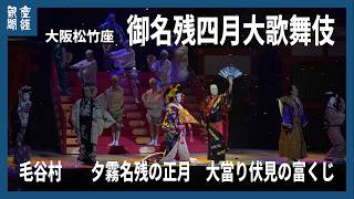 A farewell performance titled “Farewell April Grand Kabuki” is being staged at Osaka Shochikuza in Chuo Ward, Osaka, which is set to close in May due to the aging of the building, marking the beginning of a two-month run of kabuki performances that have drawn audiences with comedies and dances featuring a colorful cast of characters, continuing through April 26th.