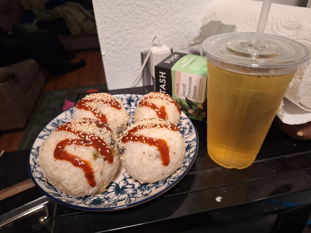 Gut_Reactions 2 weeks ago OK, round onigiris are for funerals offerings. Is that ketchup or tonkatsu or BBQ sauce on top? I would recommend some nori sheets.