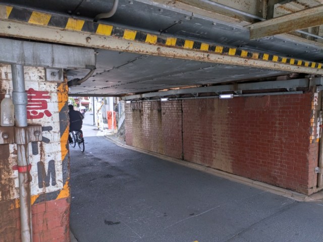 So it turned out Mr. Sato would be going to the river before lunch after all. Rerouting, he headed north from Hinodeya, going through and underpass so low that he almost had to duck his head to make it to the other side.