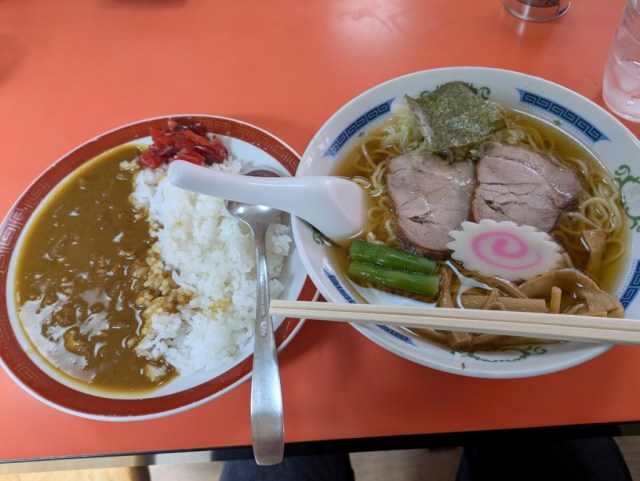 Mr. Sato was saved from the paralyzing dilemma of having to pick just one when he saw that Hinodeya offers a ramen and half-size curry rice combo for 1,100 yen (US$7.10).