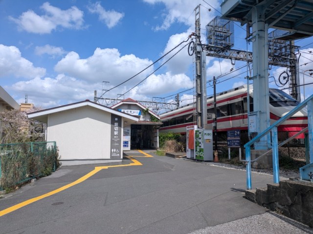 ▼ The Ryomo special limited express train passes by Horikiri Station on its way to/from Gunma and Tochigi Prefectures to the north, and the contrast in size between the train and the building really drives home how long the station has been here.
