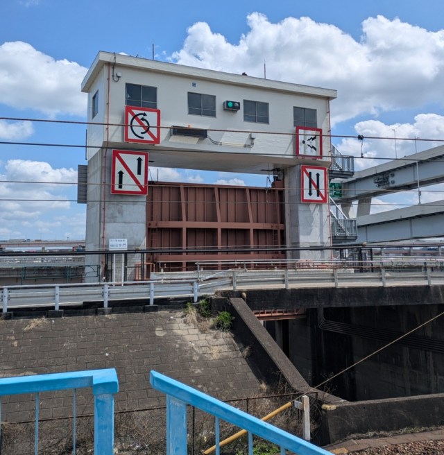 Horikiri Station is also close to the canal that connects the Arakawa and Sumida Rivers, and right away Mr. Sato’s eyes were drawn to the canal’s gate, with its signal light for ships looking to move from one river to the other.