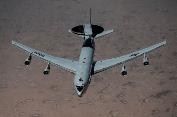 USAF Boeing E-3 Sentry (Serial No 82-0007) flies in support of Operation Epic Fury in late March 2026. (USAF)