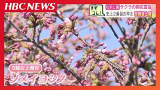 The announcement was made at Matsumae Park, a well-known cherry blossom viewing spot, where town officials confirmed that at least five flowers had opened on the standard Somei Yoshino observation tree, based on their independent monitoring.