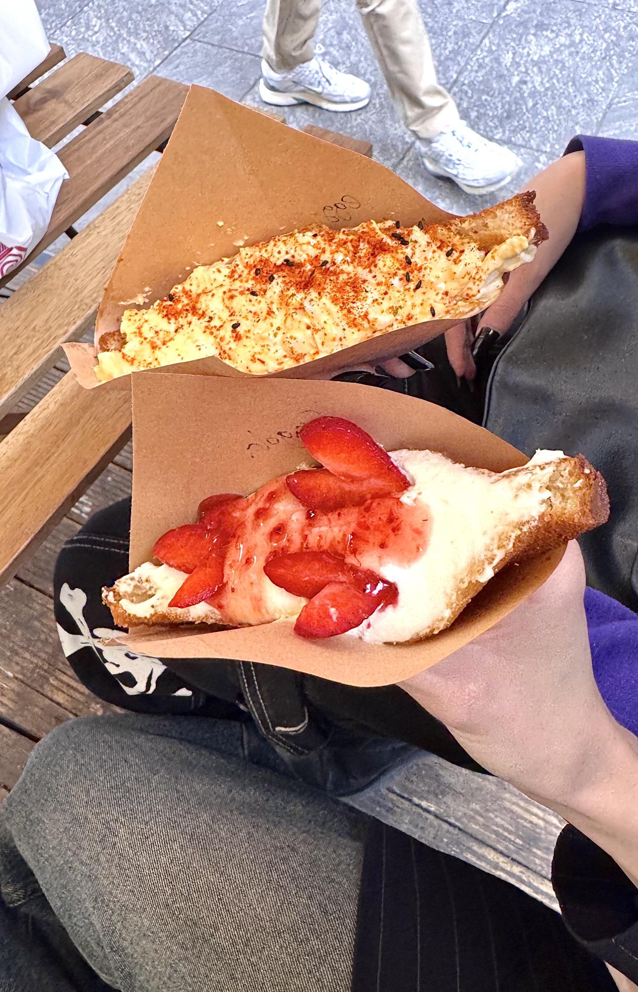 Hi! I purchased it in Mini Kombini. The Japanese fried cream sandwich, often called “age sando,” is a viral Tokyo treat featuring thick, deep-fried Japanese milk bread (shokupan) filled with whipped cream and various toppings.