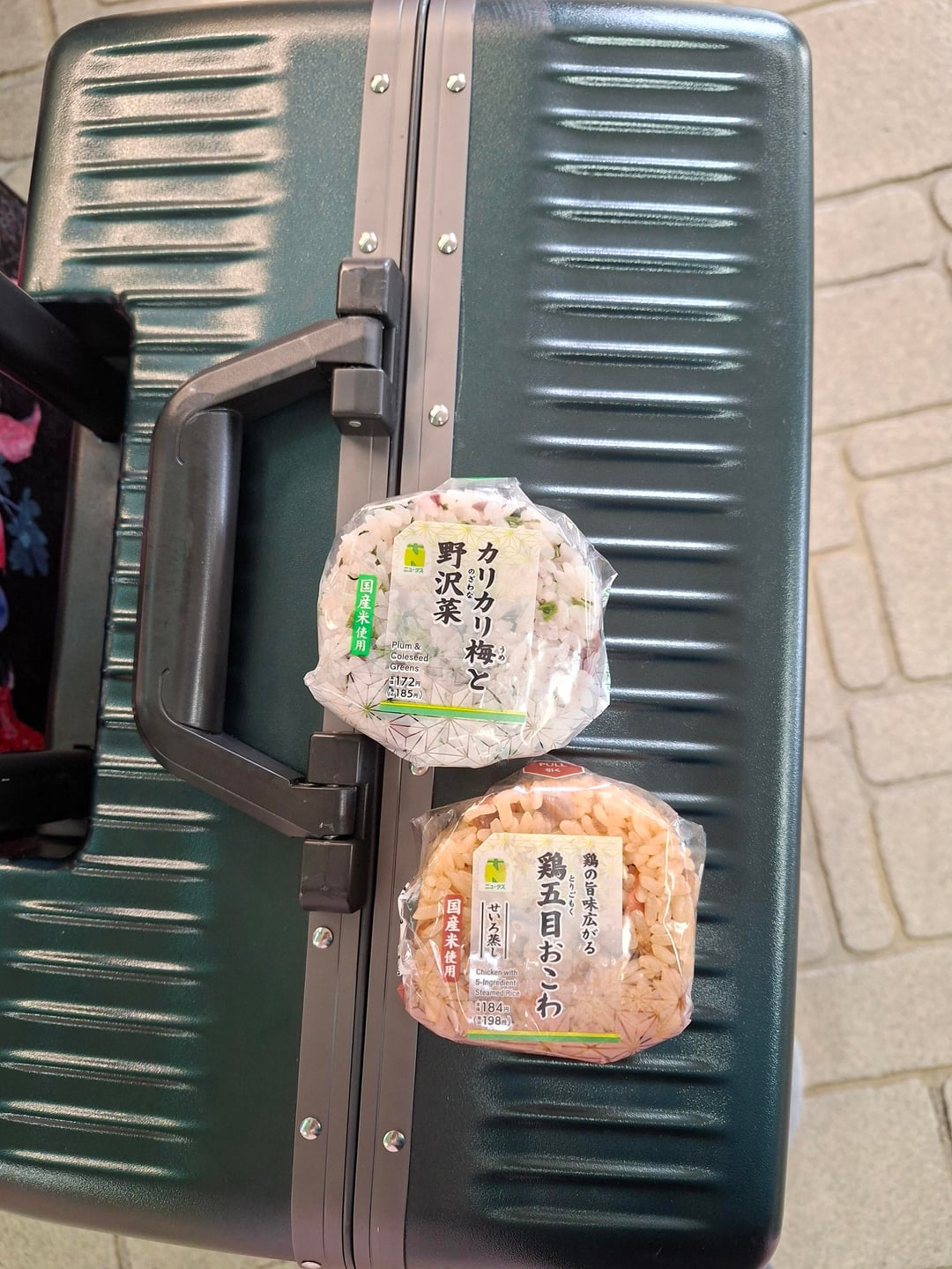 Umeboshi and Coleseed greens ongiri: First food after arriving japan. (delicious and light)