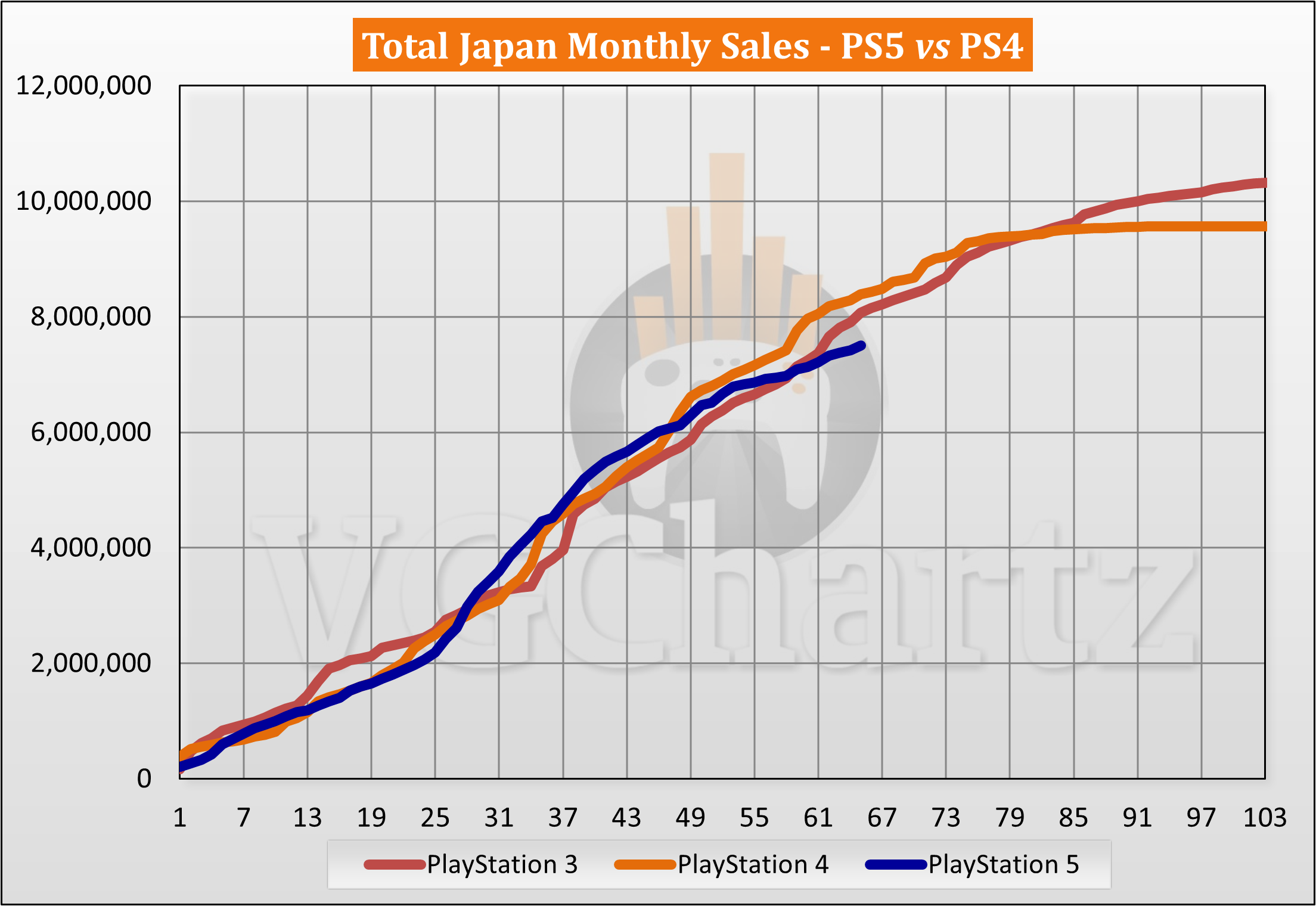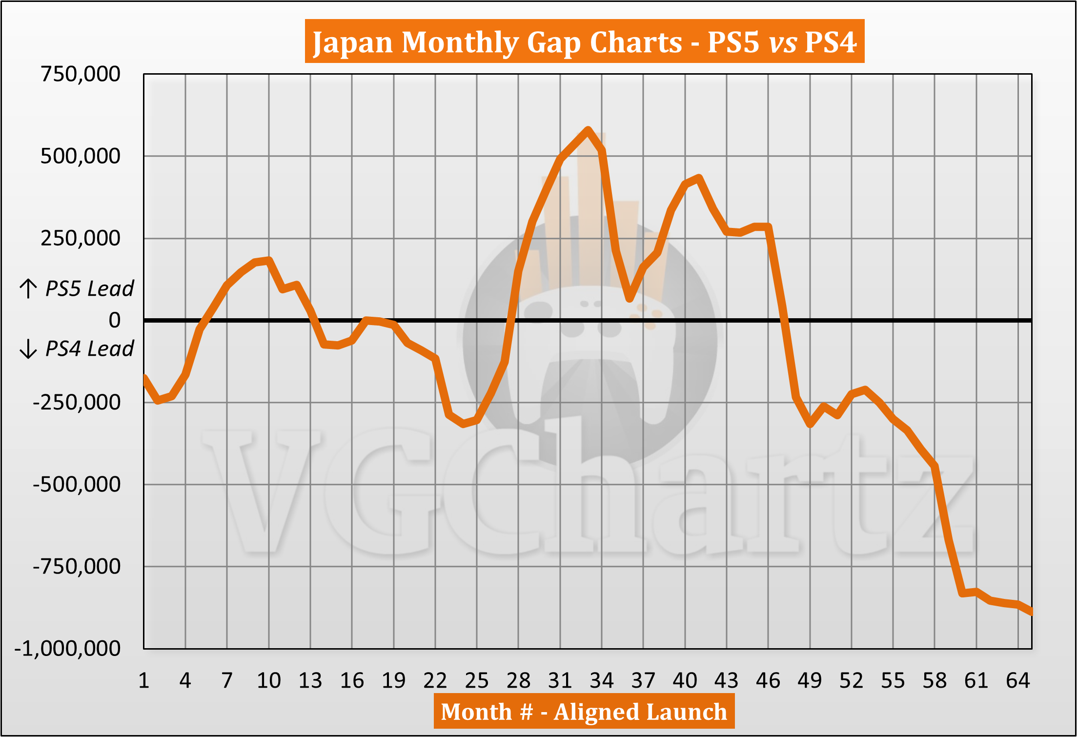 This monthly series compares the aligned Japanese sales of the PlayStation 5 and PlayStation 4.