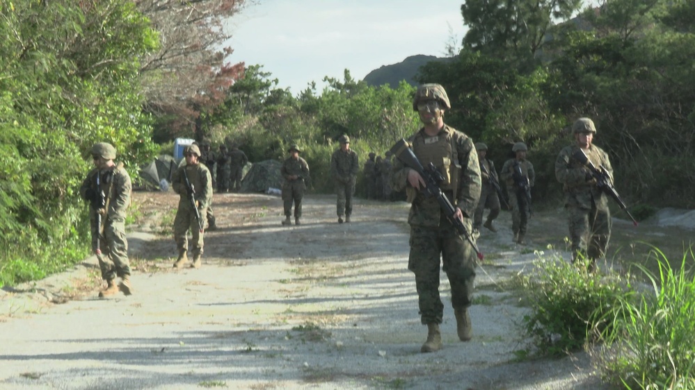 U.S. Marines with Marine Wing Communications Squadron 18, Marine Air Control Group 18, 1st Marine Aircraft Wing patrol during training in the Central Training Area, Okinawa, Japan, Feb. 4, 2026. MWCS-18 held the training to improve proficiency and enhance force protection capabilities in an expeditionary environment. (U.S. Marine Corps video by Lance Cpl. Moses Ortiz-Miller)