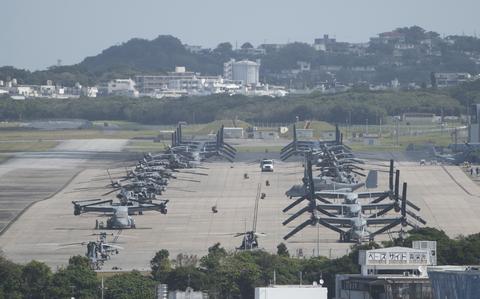 Marine Corps Air Station Futenma, Okinawa, pictured here on Feb. 26, 2026, is home to the 1st Marine Aircraft Wing. (Keishi Koja/Stars and Stripes)