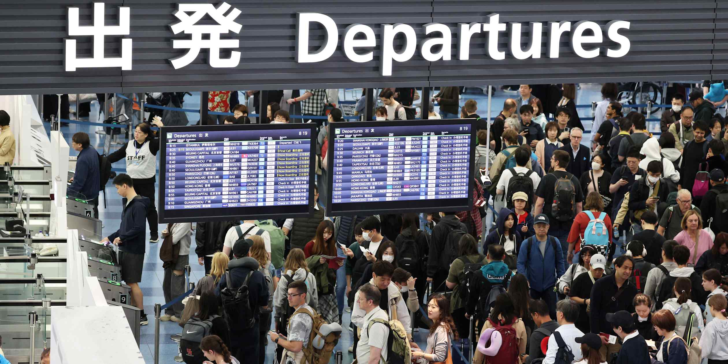 Japanese tourists will be checking in in increasing numbers at Tokyo’s Haneda Airport this year for Golden Week travel. (Photo by Rie Ishii)