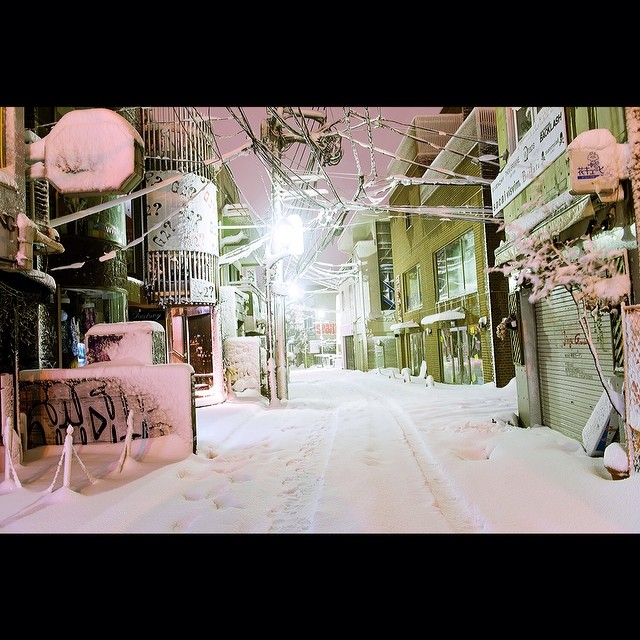 The popular G2? vintage shop on Harajuku Dori covered in snow at 2am in the morning. #G2 #Harajuku #snow #HarajukuDori G2HarajukuHarajukuDorisnowTokyo FashionAloJapan.com