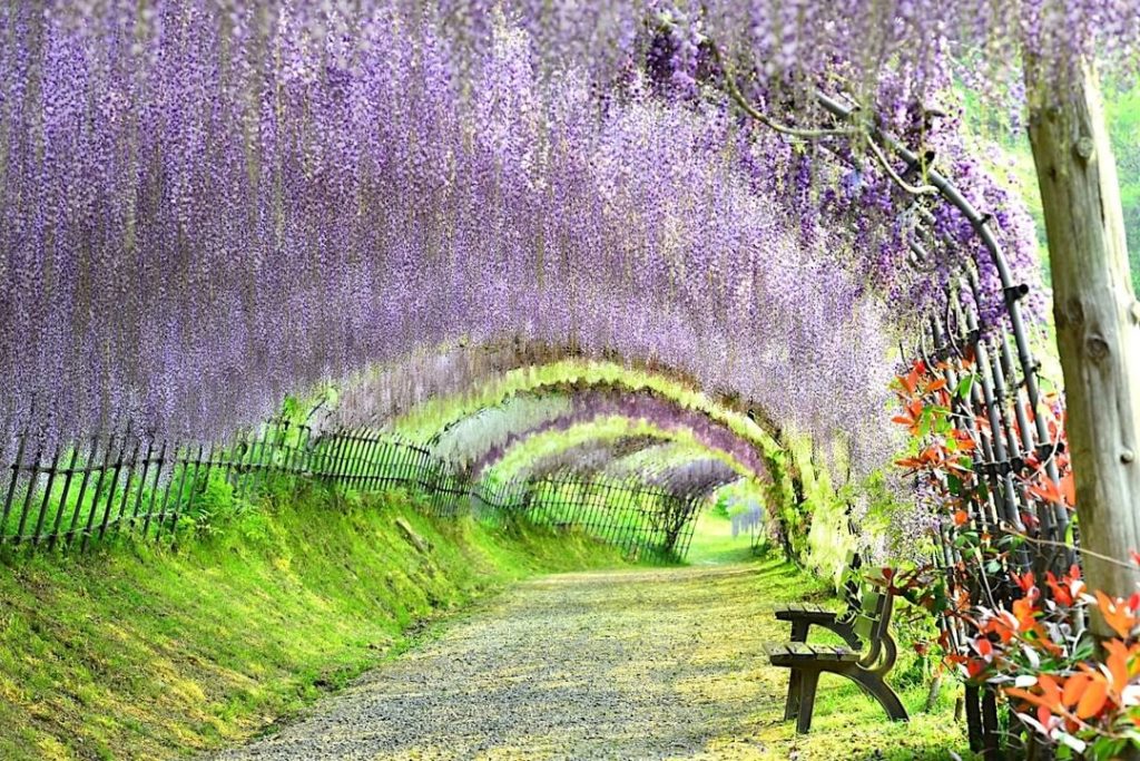 Kawachi Wisteria Garden is a private garden located in the wooded hills south of central Kitakyushu, on the island of Kyushu. The garden is famous for its spectacularly presented, large numbers of wisteria flowers. The garden is opened to the public seasonally during the wisteria season which usually peaks around late April to mid May and during the maple leaf season in autumn. Note that for wisteria season, you’ll need to purchase a ticket in advance prior to visiting. We recommend you speak to your hotel concierge prior to visiting to make arrangements.