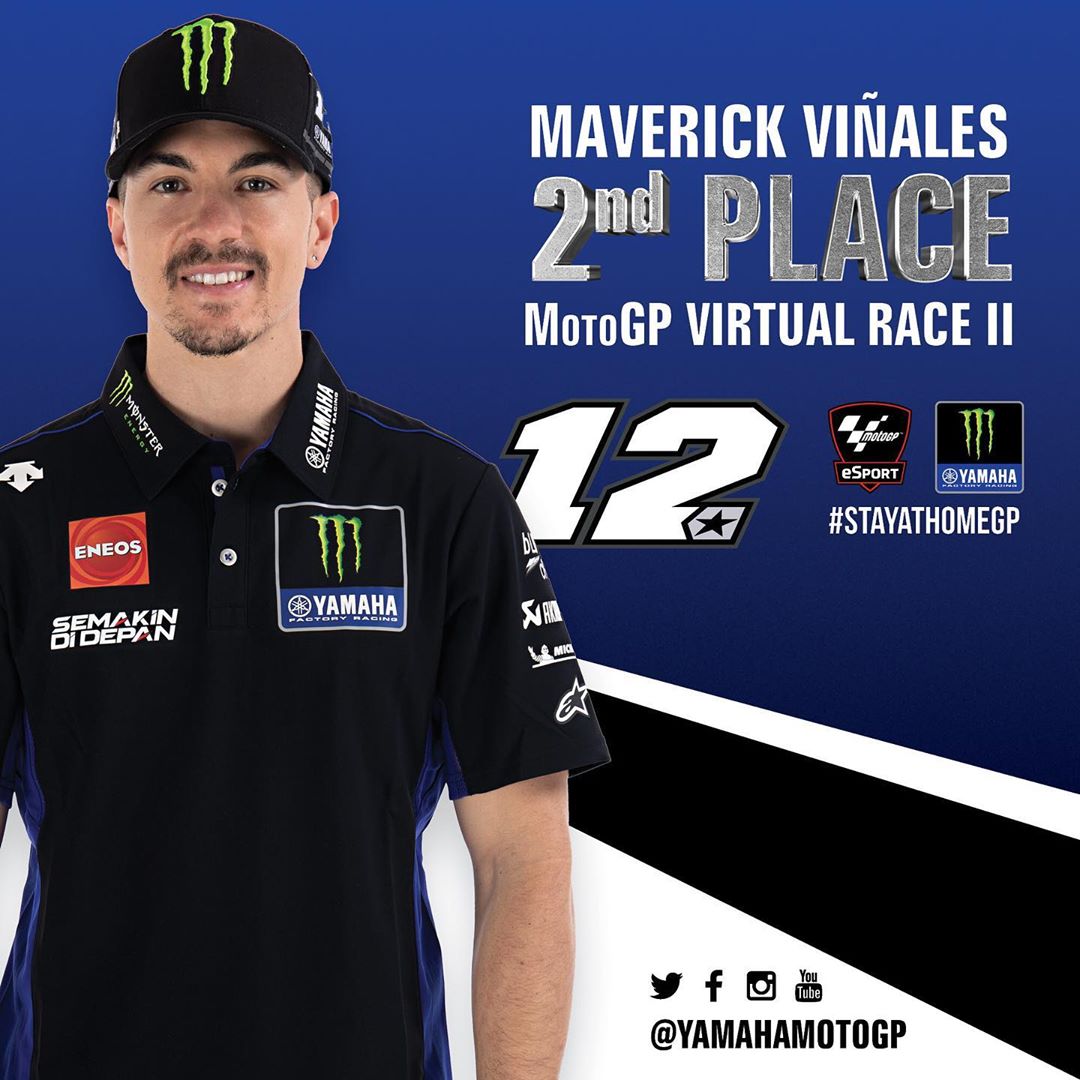 So close, @maverick12official! What a battle for the win – great effort! 👏👏 . . #MonsterYamaha | #MotoGP | #StayAtHomeGP | #StayHome | #StaySafe | #DoYourPart | @motogpesport | @motogp