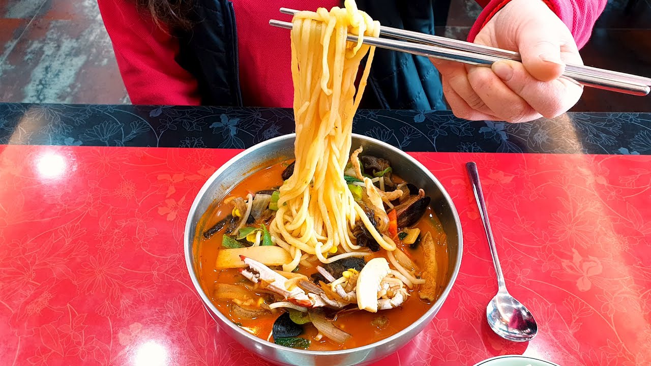 * Gimpo, Gyeonggi Province in Korea | Chinese-style noodles with vegetables and seafood, Jjamppong, handmade noodles, Korean street food, 4K Video