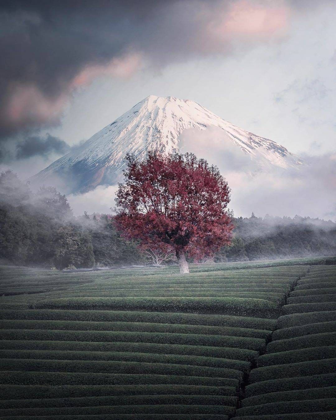 Mt. Fuji will always, always amaze us, no matter how many times we’ve seen its beauty. 🗻 The tea fields and that perfectly placed lone tree don’t hurt, either!