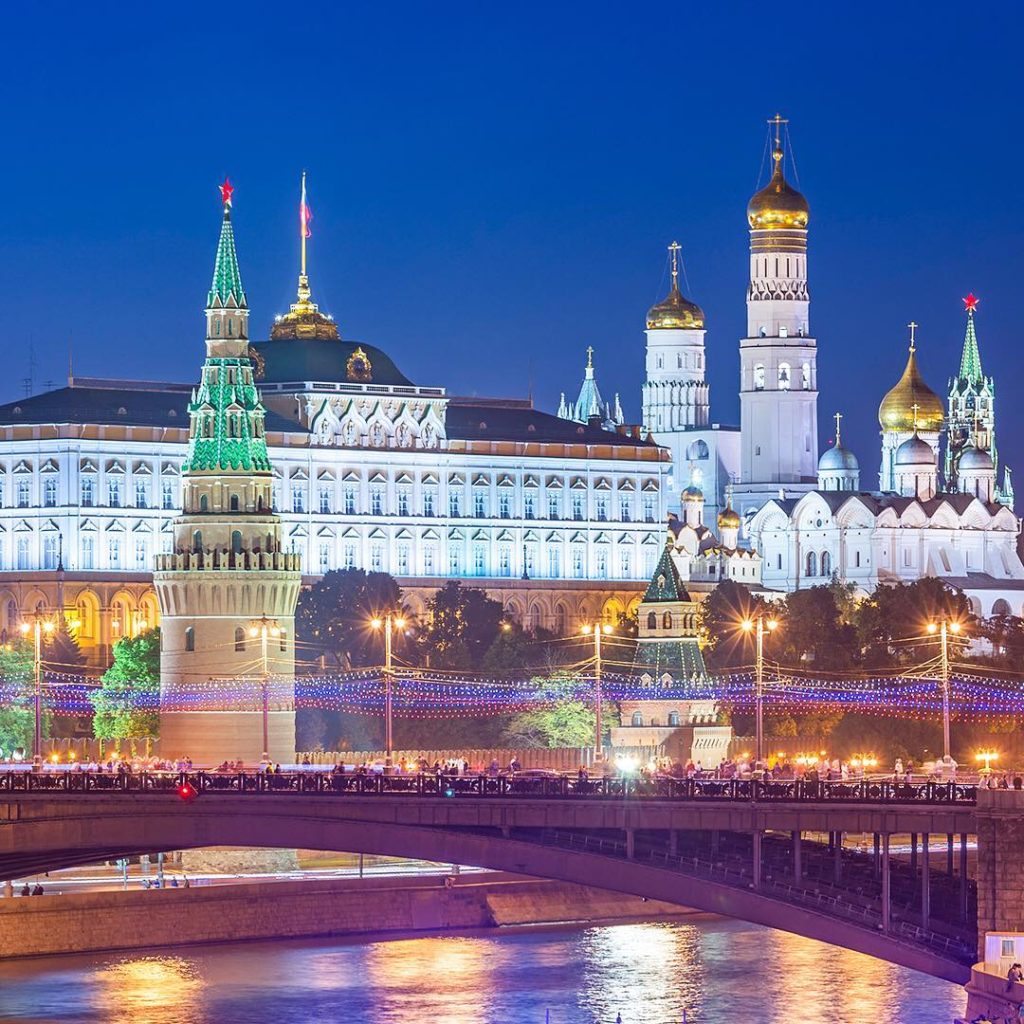 The view of the Kremlin at night, lights reflecting off the Moscow River, is a sight to behold🌃✨