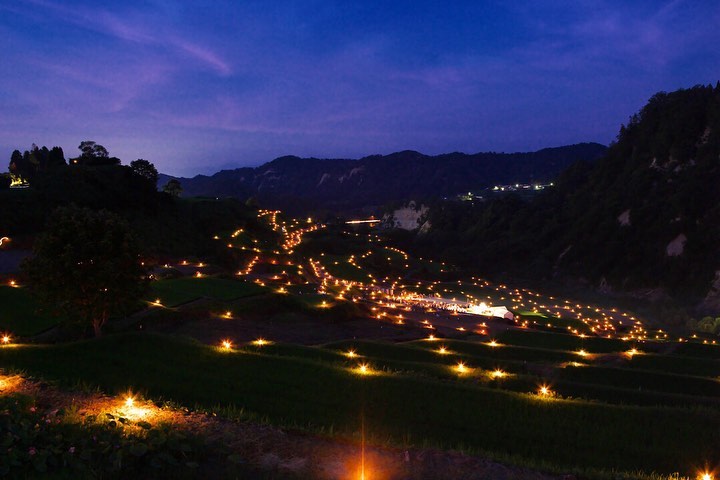 The Shikamura Rice Terrace in Yamagata Prefecture is one of the Tohoku region’s largest rice fields. Each August, the rice terrace plays host to a concert and is illuminated with 1,200 candles, a truly spectacular sight to behold.