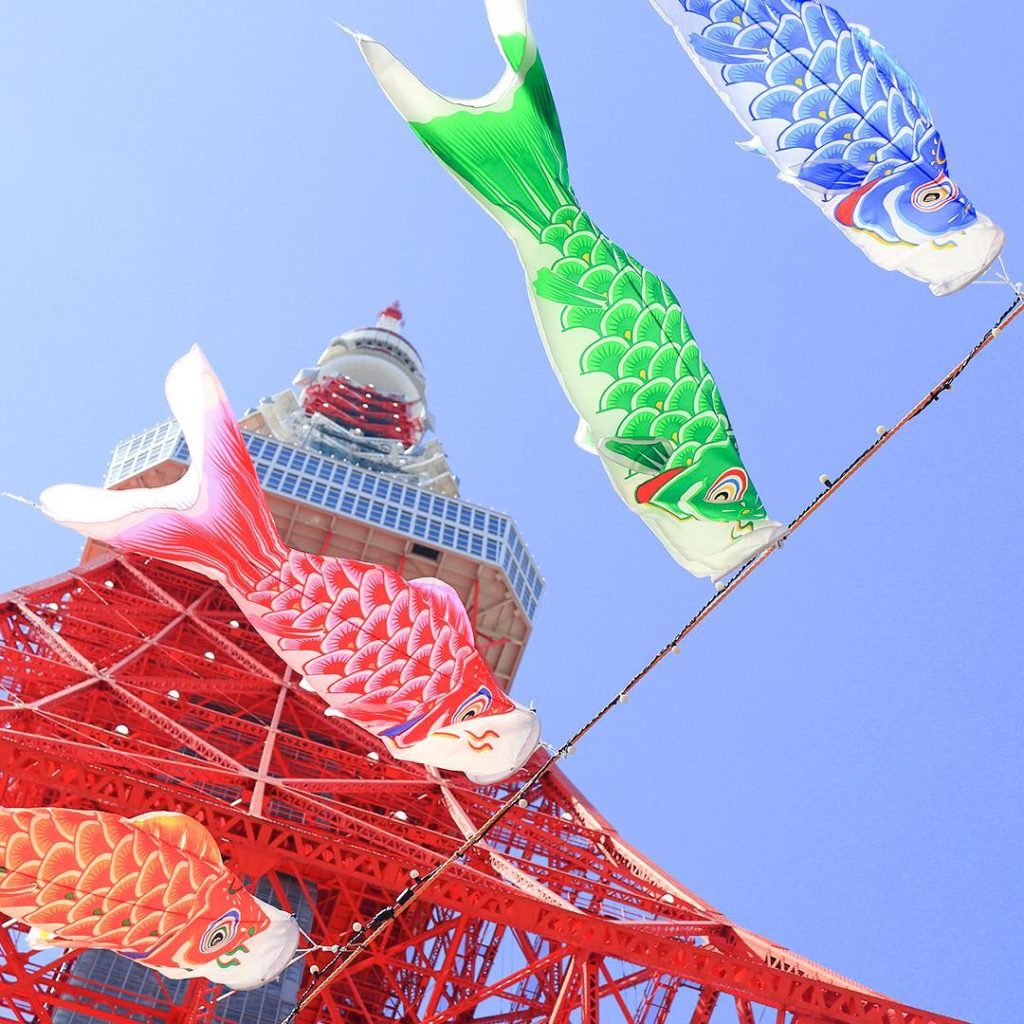 🎏Carp streamers, called #koinobori , blowing in the air to celebrate Children’s Day at Tokyo Tower.