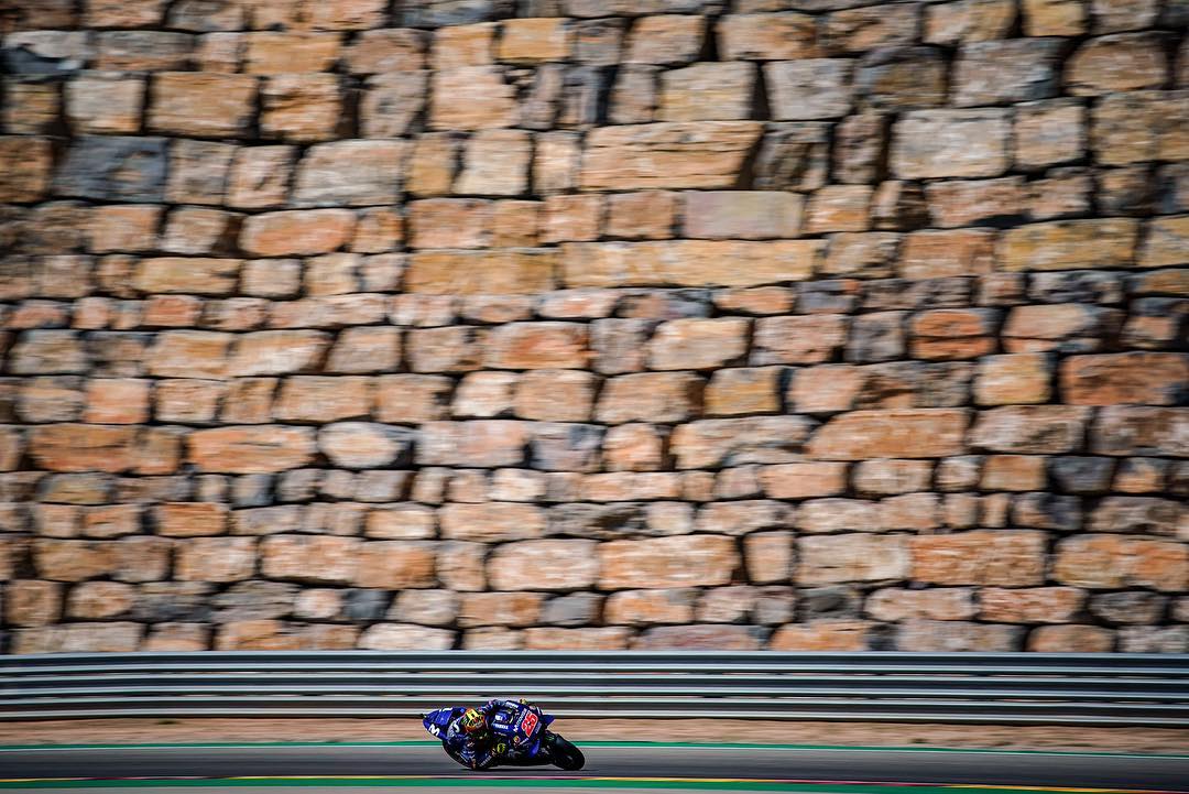 The iconic wall of the @motorlandaragon makes for a great backdrop. . . #MovistarYamaha | #MotoGP | #AragonGP #Yamaha#Yamaha MotoGP#yamahamotogpAragonGPMotoGPMovistarYamahaAloJapan.com