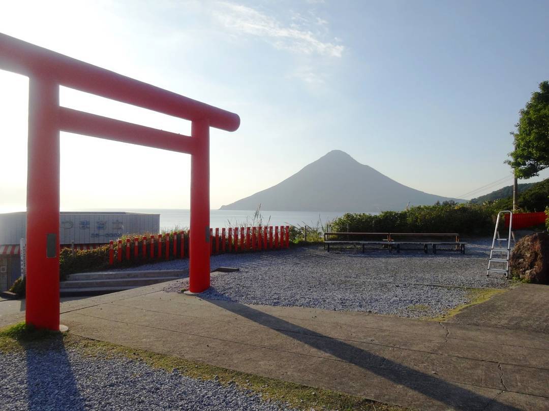 The Ryugu Shrine sits at the tip of Satsuma Peninsula with a fantastic view of Mount Kaimon.